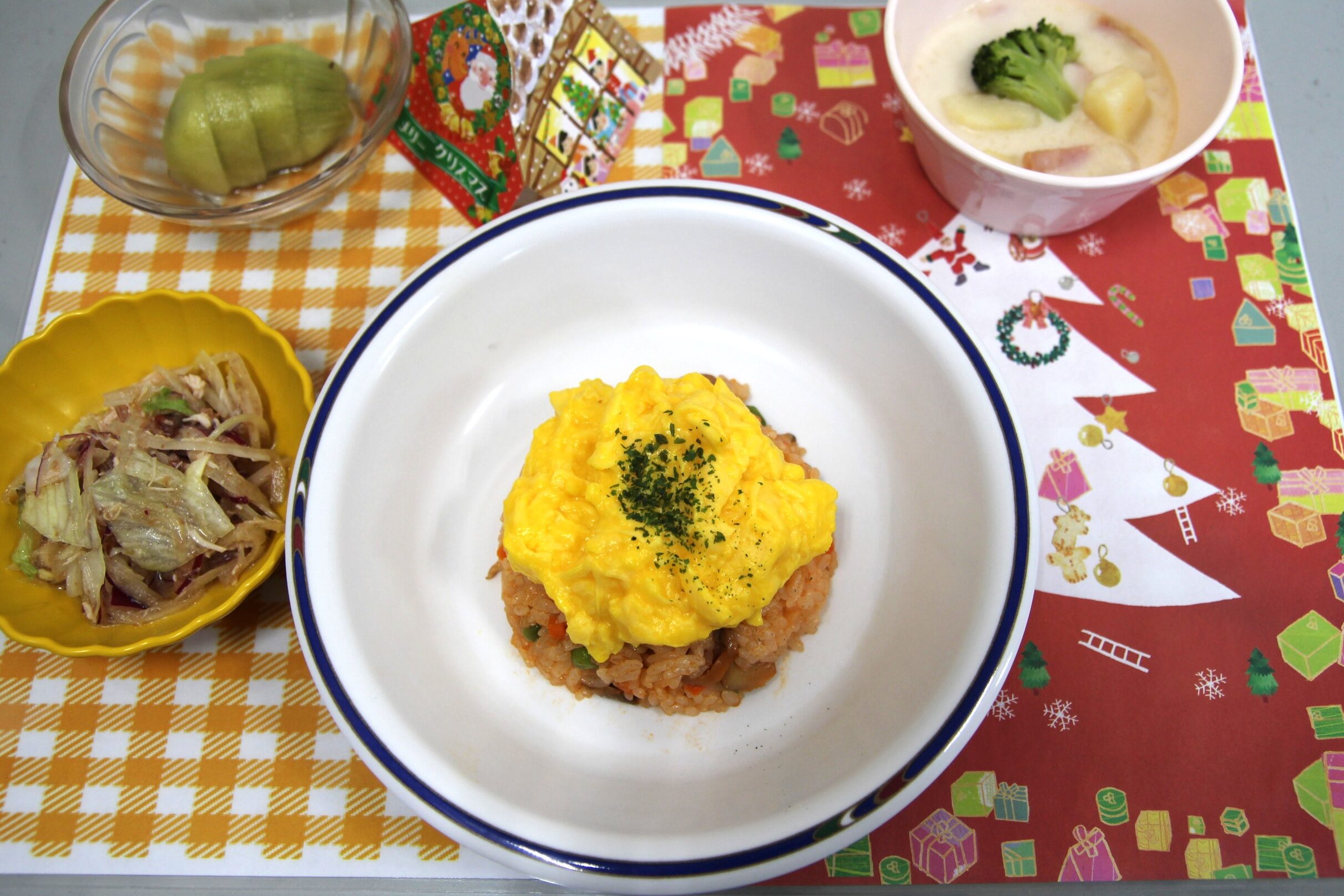 12月24日はクリスマスメニューとして、昼食時にオムライス、15時のおやつにクリスマスケーキをご提供いたしました。