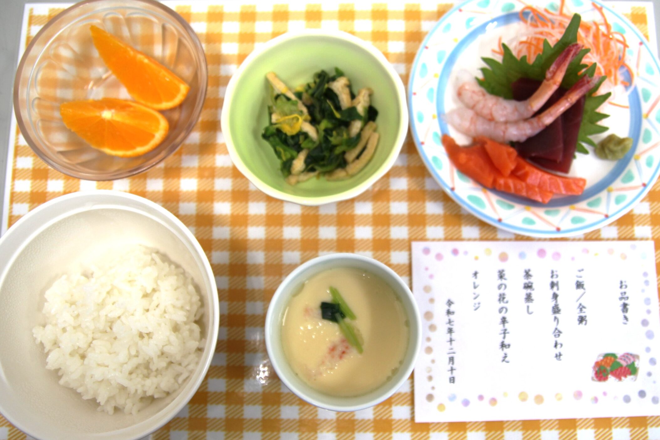12月の行事食として今年度初めてのお刺身の提供を行いました。