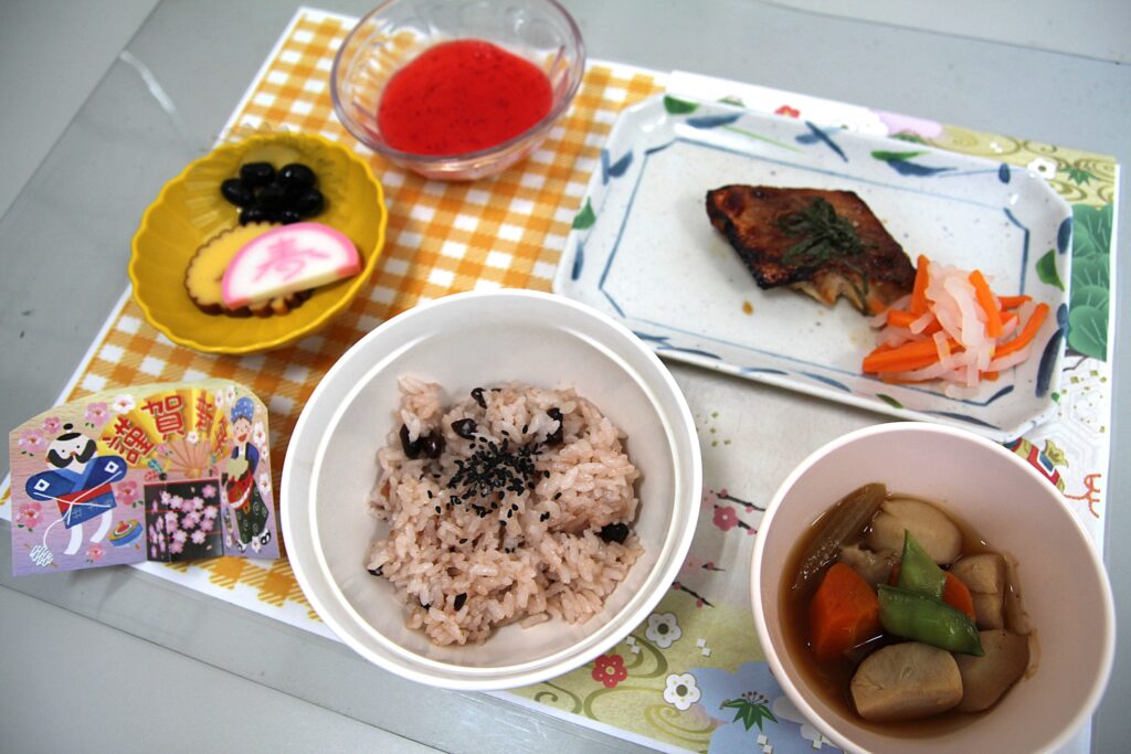 元旦の昼食には、お正月メニューをお出ししました。