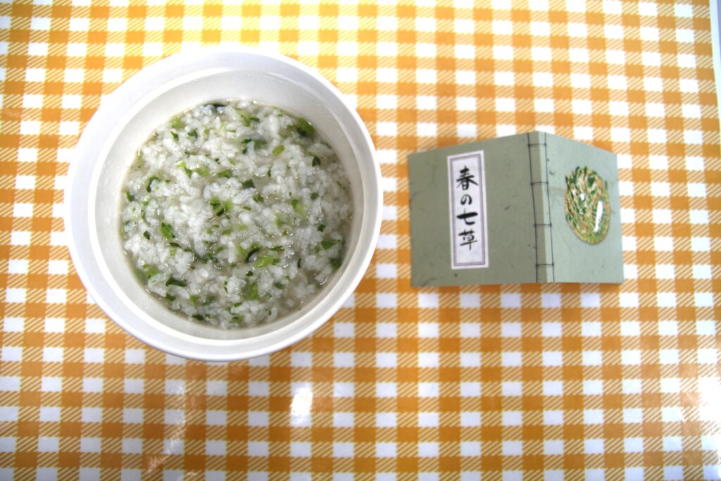 無病息災を願う意味の七草粥。今回は通常のご飯を食べている方も全員お粥でお出ししました。