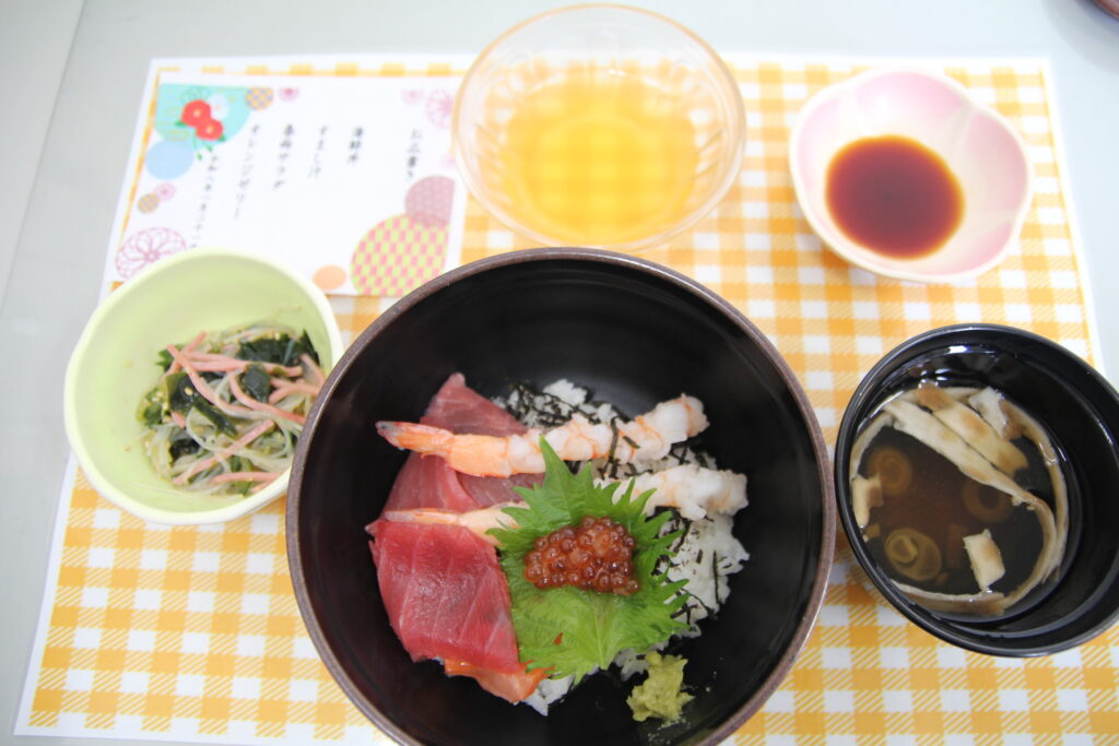 今月の行事食は海鮮丼をお出ししました。
